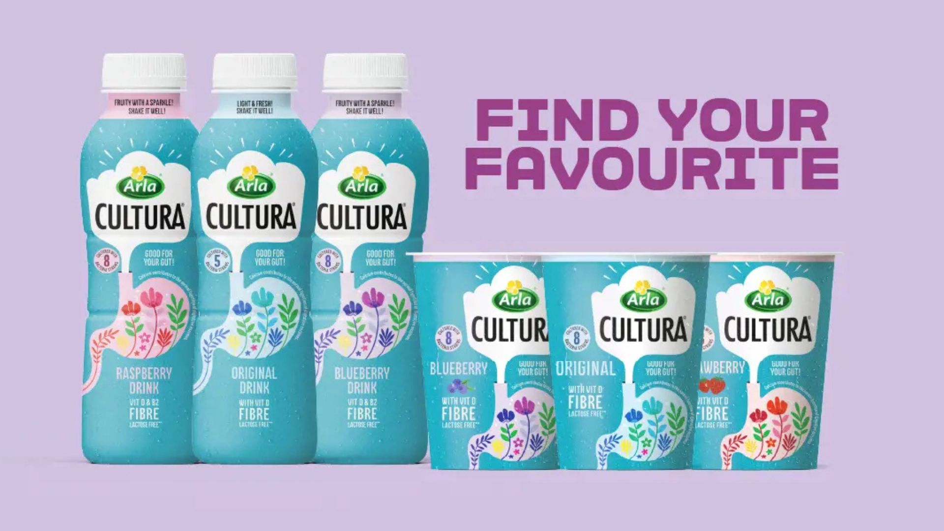 Arla Cultura. The gut-health dairy range from Arla Foods UK supports gut health with cultures, vitamin D, calcium, and fibre.